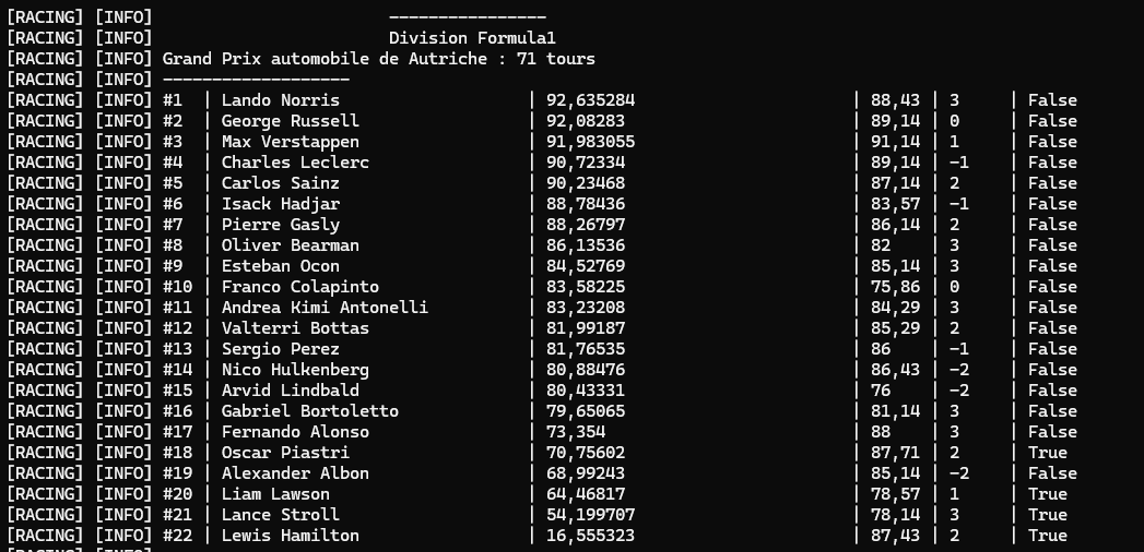 Racing Project is a simulation of differents racing category stored in database.